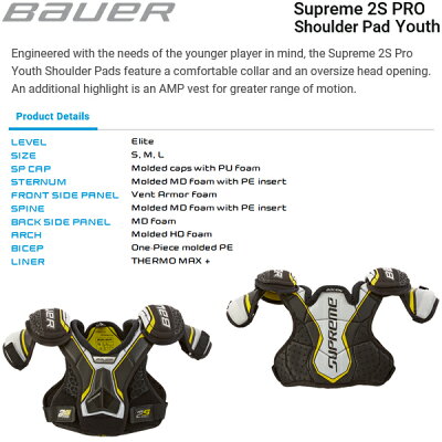 BAUER(バウアー) ショルダー S19 シュープリーム 2S PRO YTH ◆BAUER 2020-2021モデル◆ 人間工学に基づいたフィット感のあるデザインで衝撃から身体を守るのはもちろん、あらゆる動きを自然に快適にすることができ、プレーヤーのパフォーマンスを最大限に引き出します。